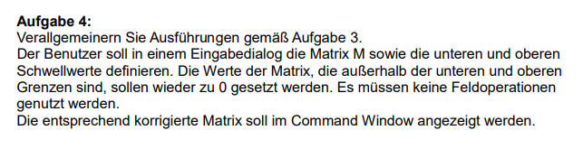 Dann würde ich sagen das er mir die unteren und oberen Grenzen eingeben soll, mit dem Input Befehl. Als nächstes muss halt das Befehl kommen, mit der ich die Matrix "aussortieren" will mit den Grenzwerten.