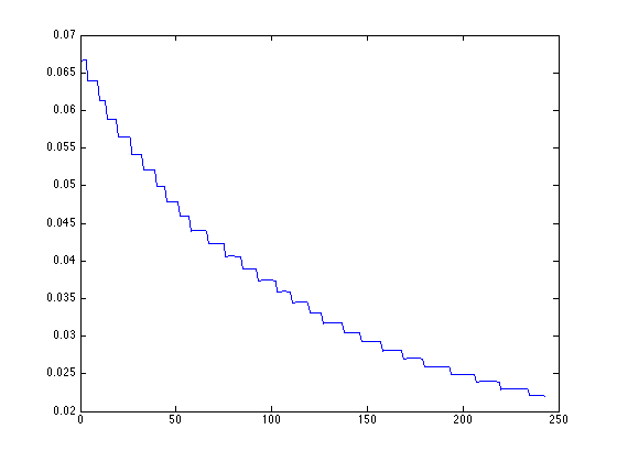 Plot der Peaks. Die Anzahl der Stufen ist gleich der Anzahl der Peaks des Signals.