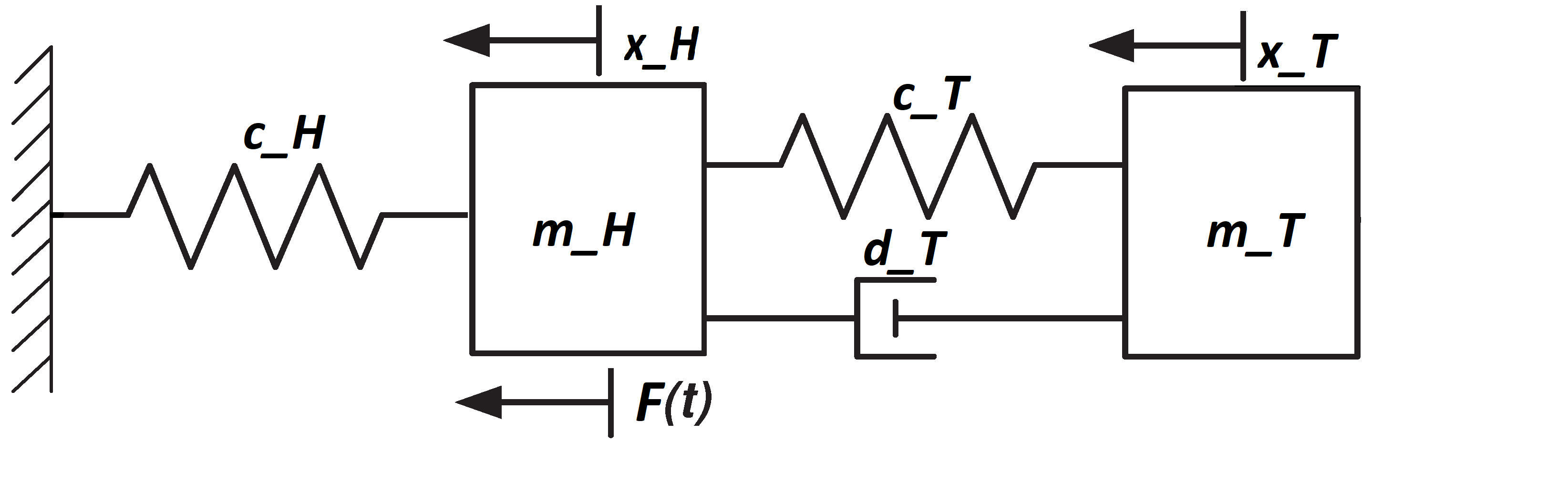 Die Hauptmasse über eine Feder mit dem "Boden". Die Kraft greift an der Hauptmasse an.