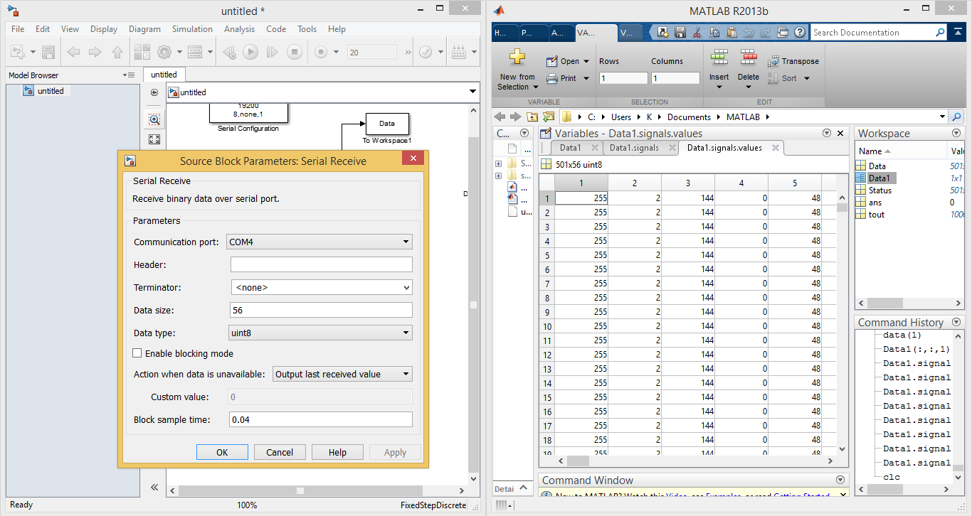 ich lese über den Serial Receive Block einen Datenstream aus.
