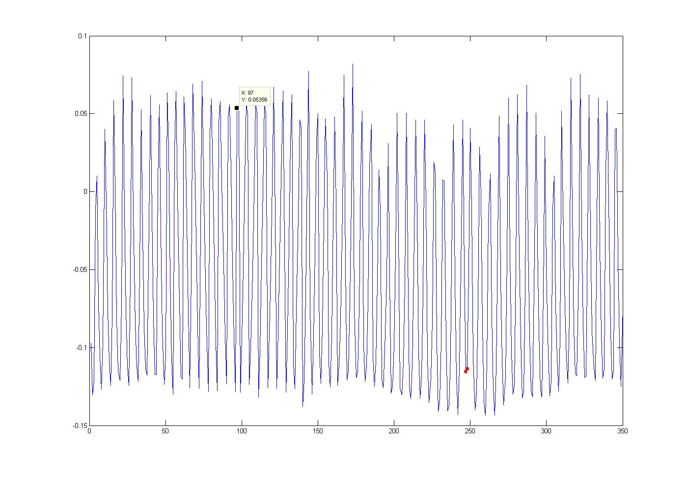 Man erkennt das alle 150 Punkte ein Ereignis eintritt. Das ist jeweils die Mitte des Signals.