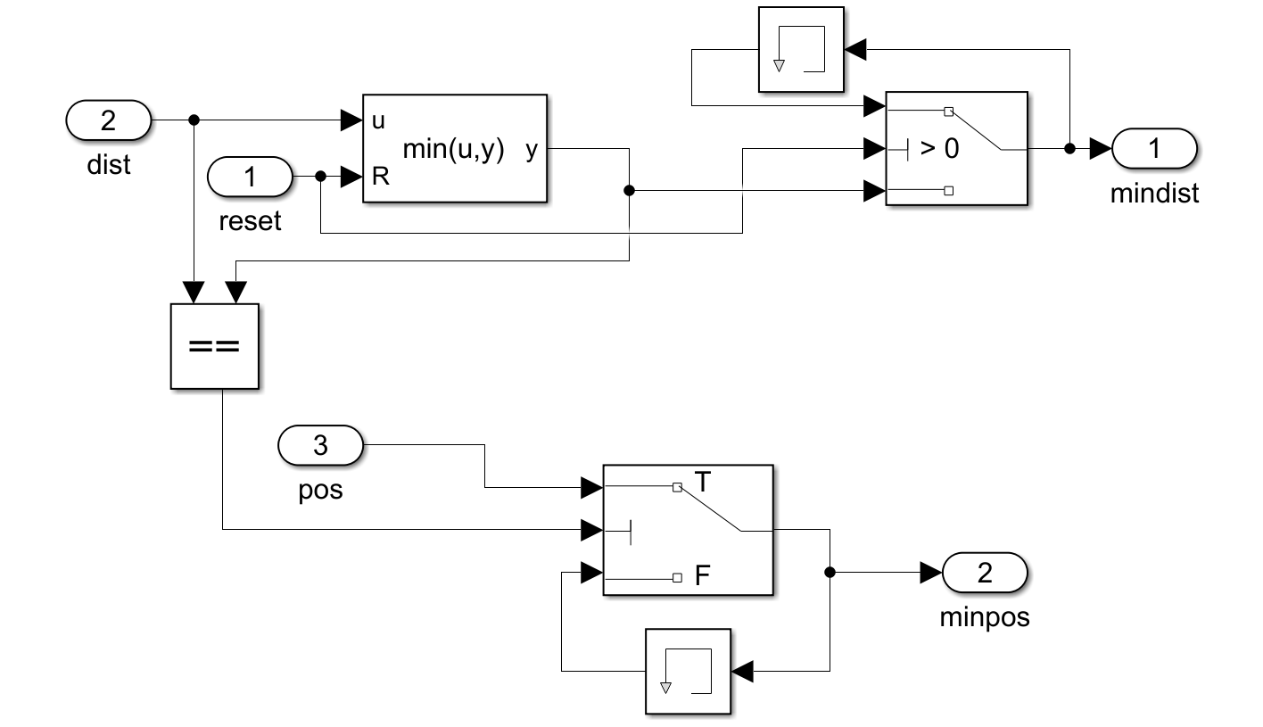 ich habe die Signalausgabe angehängt. Die minimale Distanz bleibt wie gewollt beim gleichen kleinen Wert, allerdings die dazugehörige Position (Signal minpos) nicht. Das Signal pos ist das Quellsignal von minpos. Die Berechnung dazu habe ich auch hochgeladen.