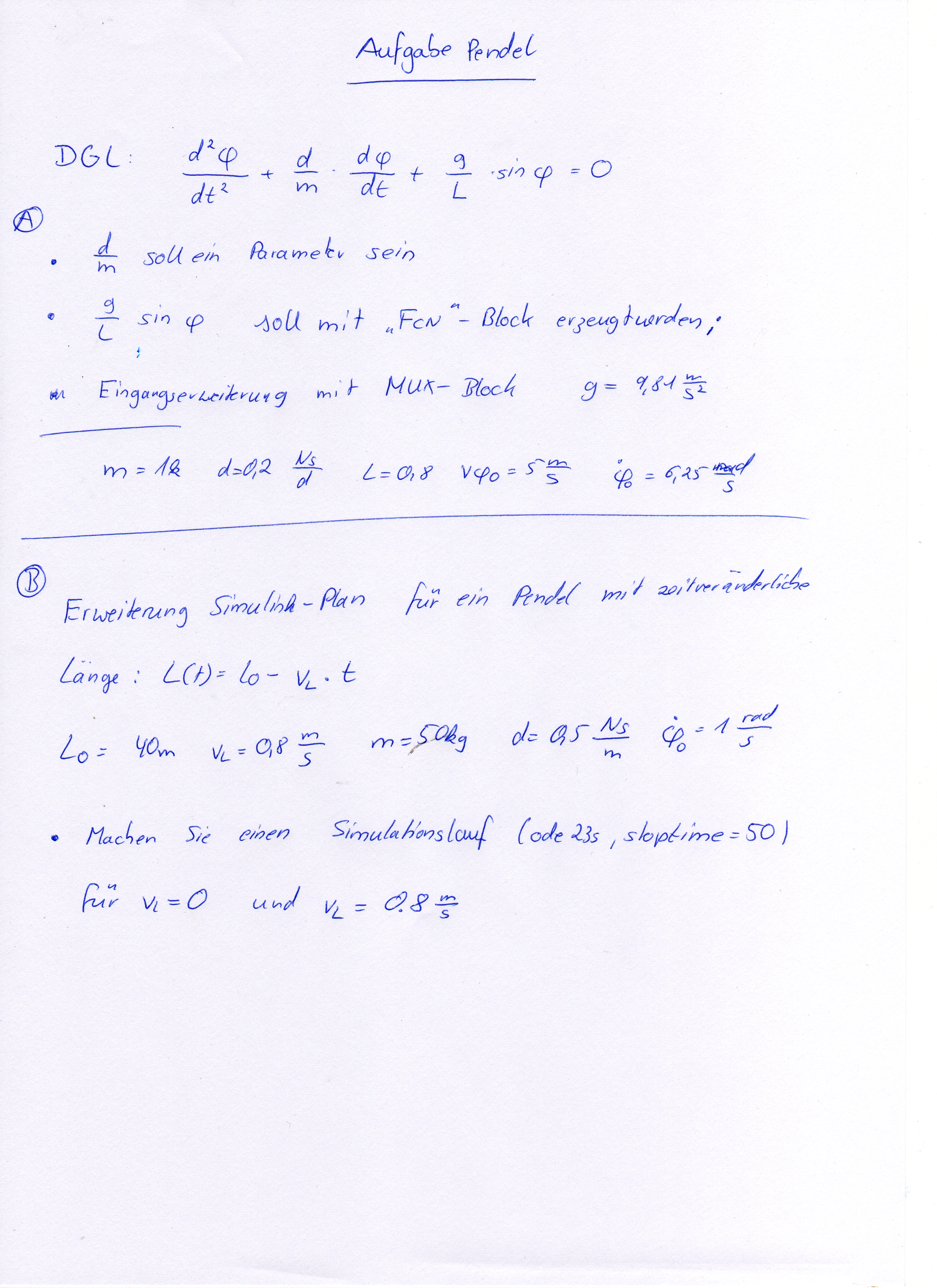 Hallo zusammen, ich habe folgende Pendelaufgabe und Lösung.