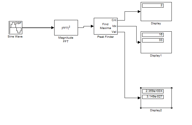 Wenn es dir aber rein um die Frequenz des Maximum geht, wäre das ja egal...auch das die Skalierung des FFT Blocks zur Darstellung des positiven Frequenzbereichs nicht stimmt. Das müsste man seperat handhaben.
