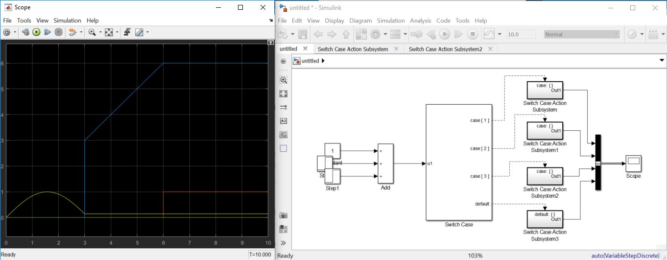 Falls das Signal 1 oder 2 kommt, soll es bestimmte Simulink Funktionen durchlaufen.