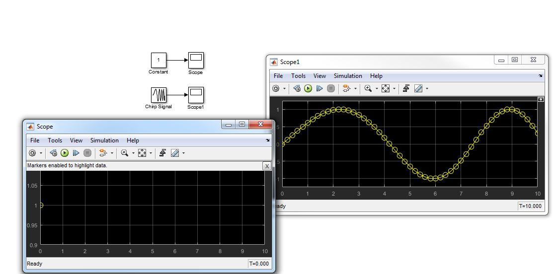Ein "Chirp Signal" Block macht eine Linie und meherere diskrete Werte.