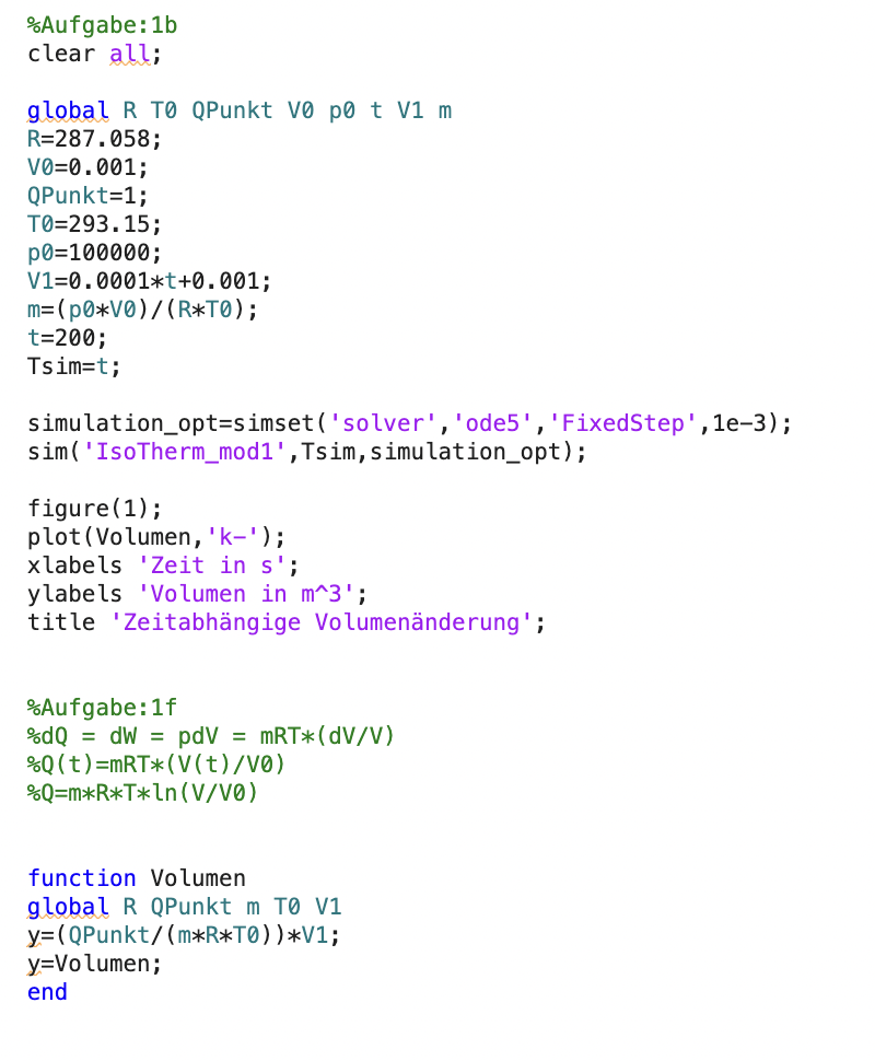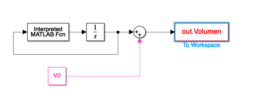 du hast in den Interpreted MATLAB Function Block "Volumen" geschrieben. Was ist denn Volumen?