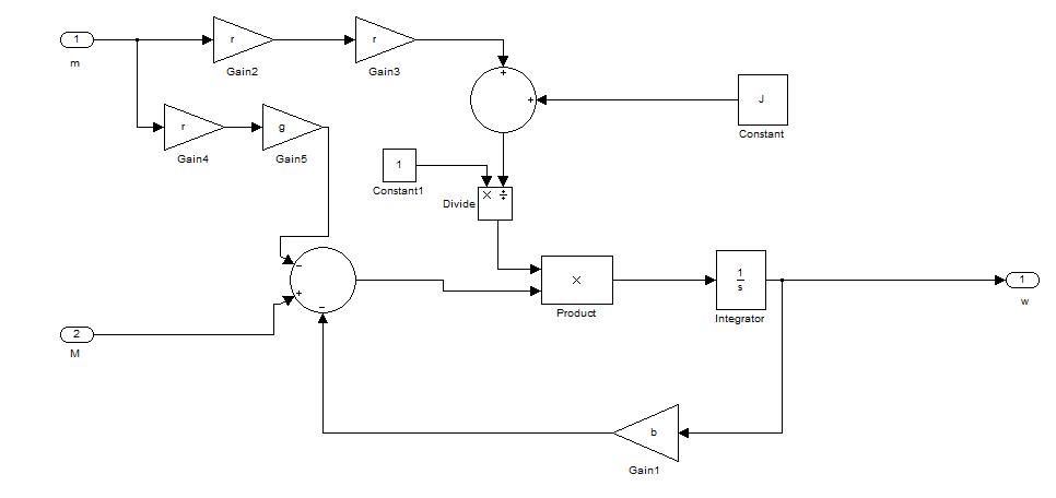 ω∙s=M/(r²∙m+J)-(ω∙b)/(r²∙m+J)-(r∙m∙g)/(r²∙m+J)