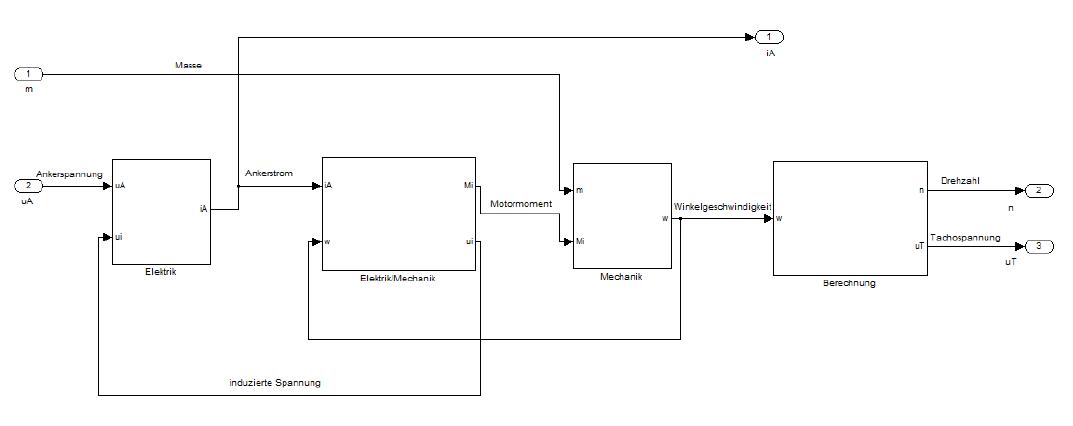 Das Gesamtmodell beschreibt einen Elektromotor, der eine Seilwinde antreibt.