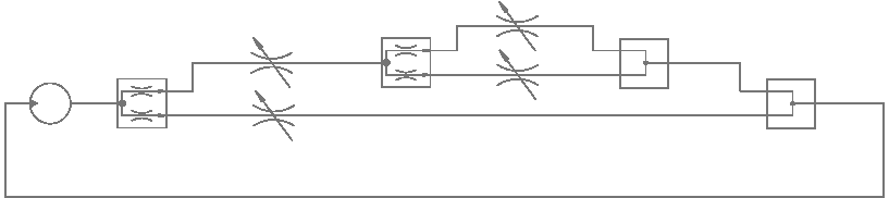 Die nähest liegende Lösung wären zwei flow_Diverter in Reihe, was aber mMn das Problem mit sich führt, dass für den Fall, falls alle drei Ventile geöffnet sind, der Massenstrom in 1/2, 1/4, 1/4 aufgeteilt wird.