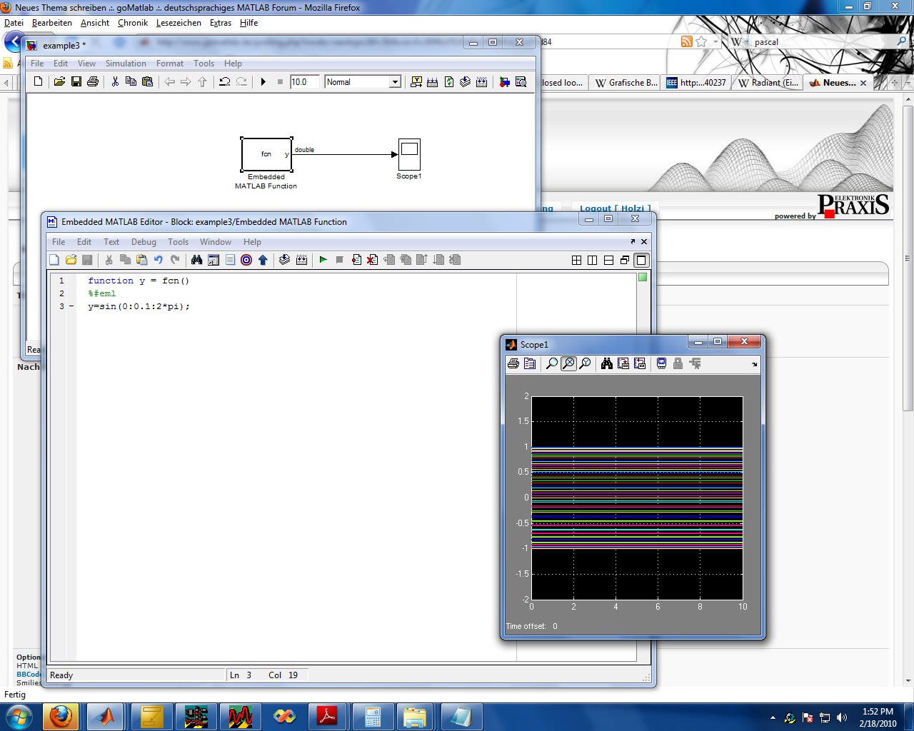 ich habe vor mir einen Sinus zu generieren in einer M-File und diese auf dem Scope auszugeben.