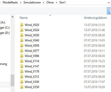 Ich habe einen Überordner, genannt "Simulation1". in diesem Ordner befinden sich Unterordner für verschiedene Windgeschwindígkeiten, z.B. genannt "Wind_V020". Wenn ich mein Modell exemplarisch für die Windgeschwindigkeit "Wind_V020" durchlaufen lasse, sieht der Vorgang wie folgt aus: