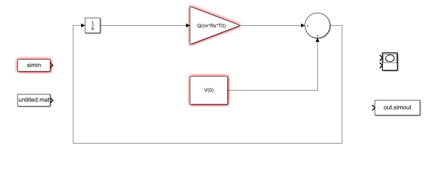 Ich könnte mir beispielweise vorstellen am Ende das V(t) ausgegeben werden soll. Dementsprechend müsste es rückgekoppelt werden mit einem Integrator-Block und das ganze nochmal multipliziert werden mit dem Quotienten Q/mRsT?