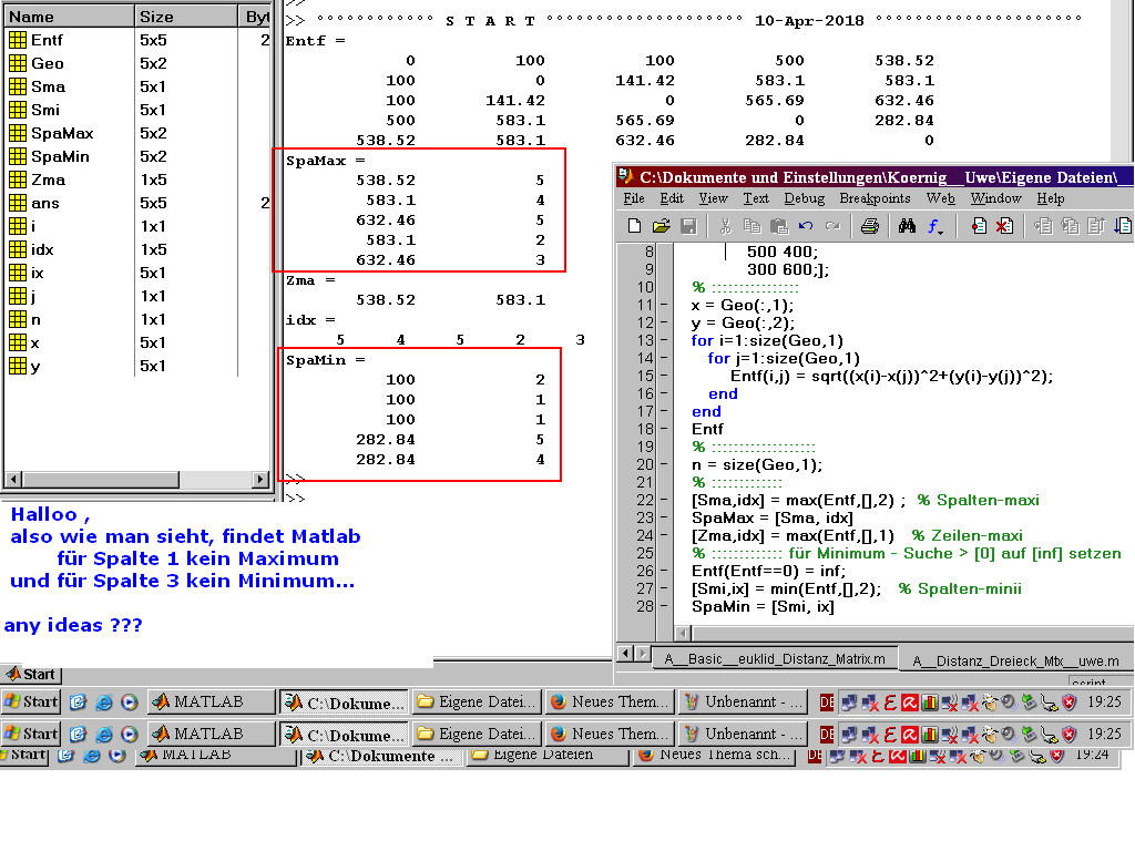 SpaMax = [Sma, idx] [Zma,idx] = max(Entf,[],1)% Zeilen-maxi % ::::::::::::: für Minimum - Suche > [0] auf [inf] setzen ::::::::::::