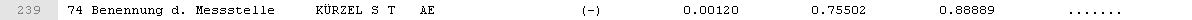 Nun möchte ich aus diesen einen Stringeintrag die Nr., Nennung, das Kürzel, sowie die dazugehörigen Messwerte in einzelne Variablen oder in einem Array mit entsprechenden Indizes speichern.