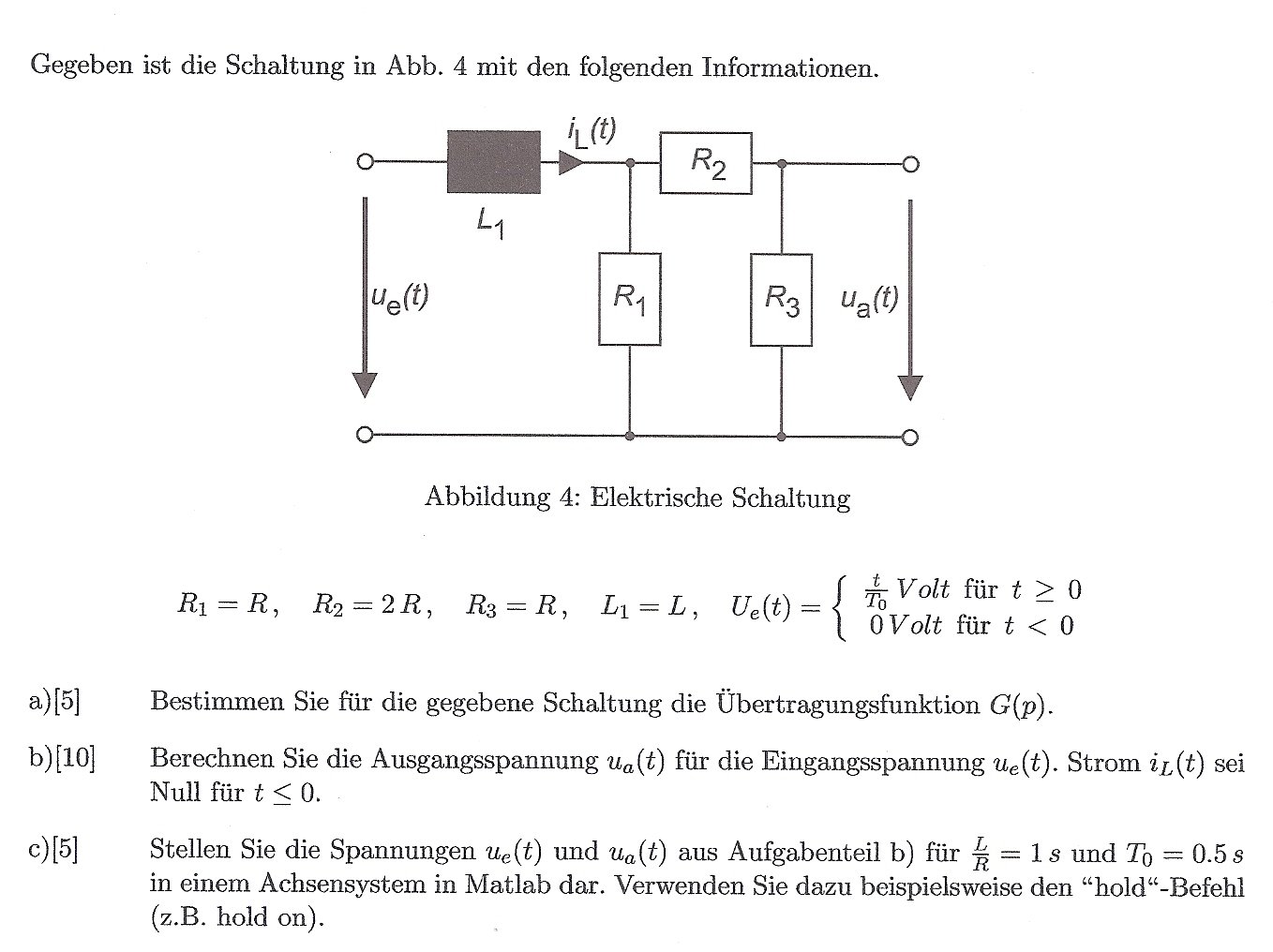 Kann mir einer helfen? Ich muss die Eingangsspannung und Ausgangspannung einer Schaltung in einem Achsensystem in Matlap darstellen. Hierzu soll der hold Befehl genutzt werden. Es handelt sich um eine Schaltung mit einer Induktivität und drei Wiederständen.
