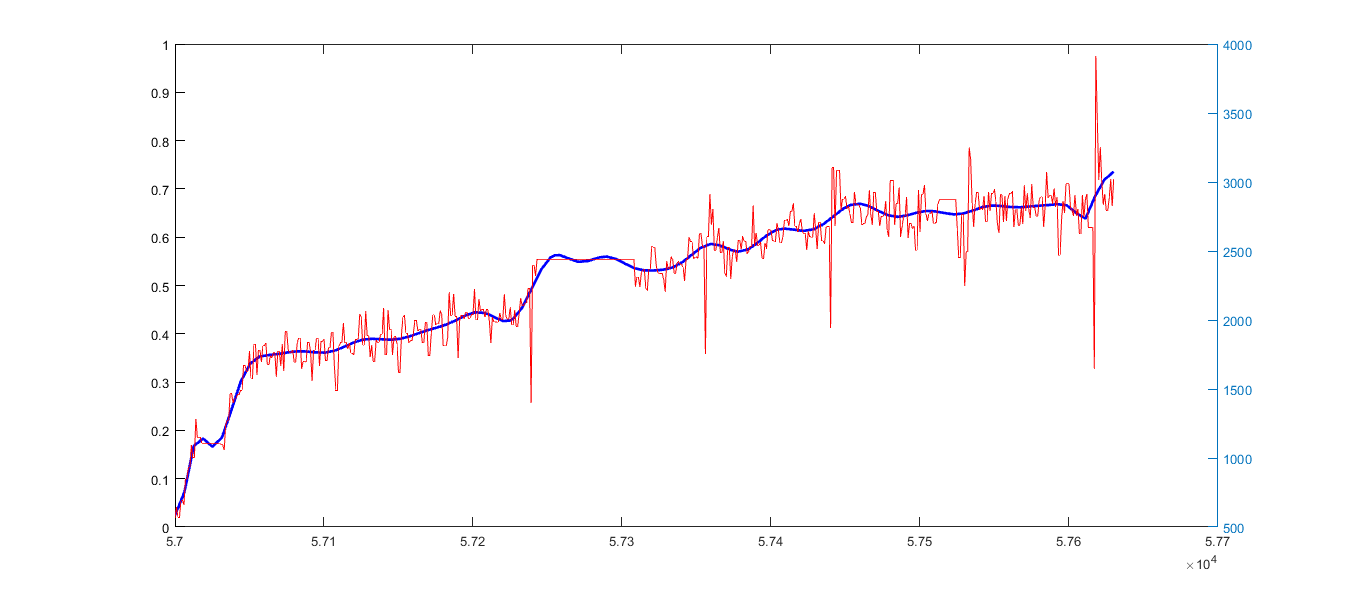 Die Rohdaten liegen in 1034 Einzelwerten vor. Die geglätteten Daten als struct. Nun würde ich gern die geglätteten Daten als eine Einzelvariable mit einer Spalte X-Werte und einer Spalte Y-Werte (länge 1034 Zeilen) erzeugen.