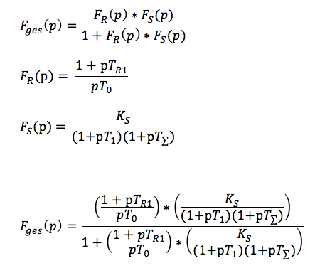 Das erste Problem scheint die Aufgabenstellung selbst zu sein. Ks, T1, T2 sind die Parameter der Strecke (PT2 mit 2 reellen Zeitkonstanten). Ergo würde ich annehmen, dass TR1, Tsum und T0 Parameter des Reglers sind. Stellt sich die Frage: Was für ein Regler ist das? Wenn du den Regler hast, dann kannst du die Gesamtübertragungsfunktion herleiten: