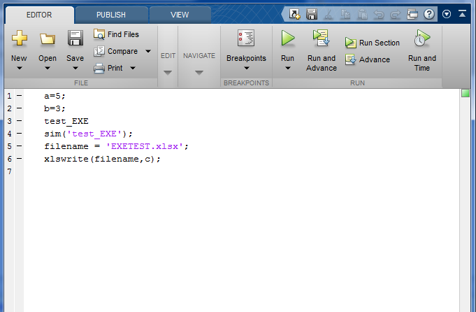 hab eine mainfile.m, die ne zwei variablen definiert, eine Simulink datei aufruft. Die Simulink datei speichert das ergebnis einer Rechnung im Workspace und die mainfile.m schnappt sich das ergebnis und legt es in einer Excel ab.