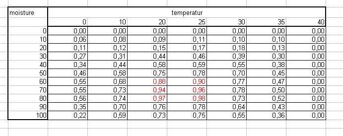 Für ein dynamisches Modell würde ich gerne EINE Gleichung finden die mir meinen "Daumen*pi" 3D Graphen (siehe Anhang) beschreibt und ich somit die relativen Abbauraten für gegebene Temperatur und Feuchtigkeitswerte berechnen kann.