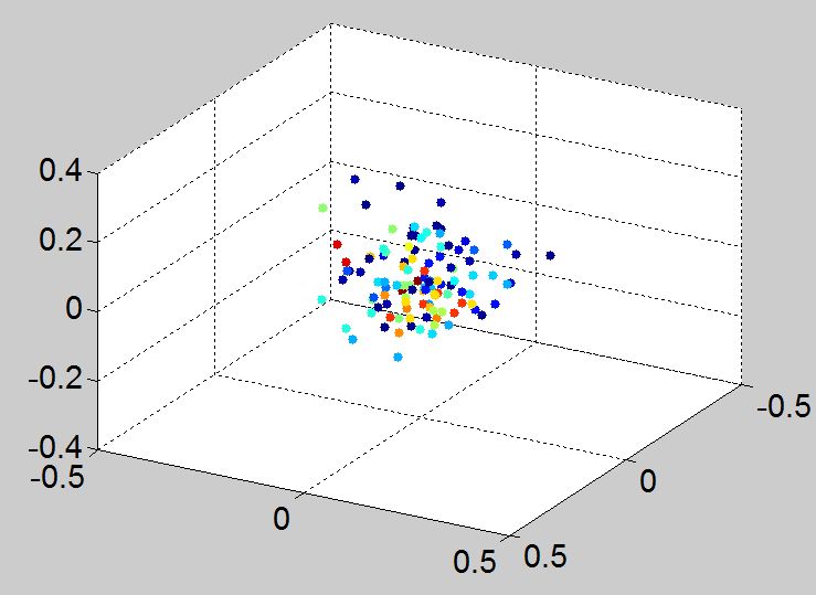 ich habe ein 3D-Datenset f(x1,x2,x3)=y (n=130 Werte) welches eine Punktwolke im Raum mit hohen 'Y'-Werten im Zentrum der Wolke darstellt, welche in die Peripherie hin in exponentieller Weise abnehmen (siehe angehängtes Bild). Gesucht ist eine Regressionsgleichung, welche diesen Zusammenhang in Abhängigkeit von x1, x2, x3 beschreibt. Wenn man jeweils nur über einer Achse (x1 oder x2 oder x3) mittels dem "fit"-Befehl eine Regressions macht, erklärt das "gauss1"-Modell jeweils