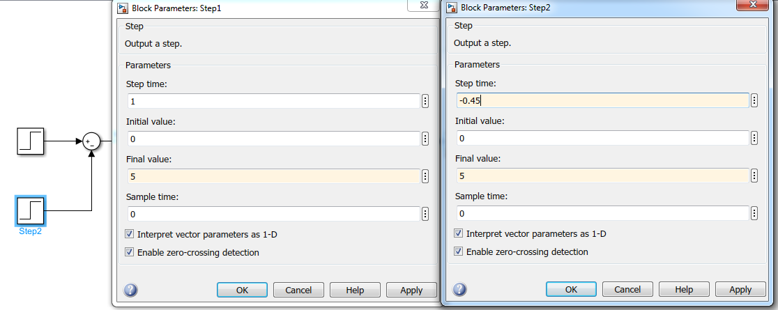 meines Erachtens muss die "Step Time" beim ersten Block 0 und beim zweiten Block 0.45 sein.