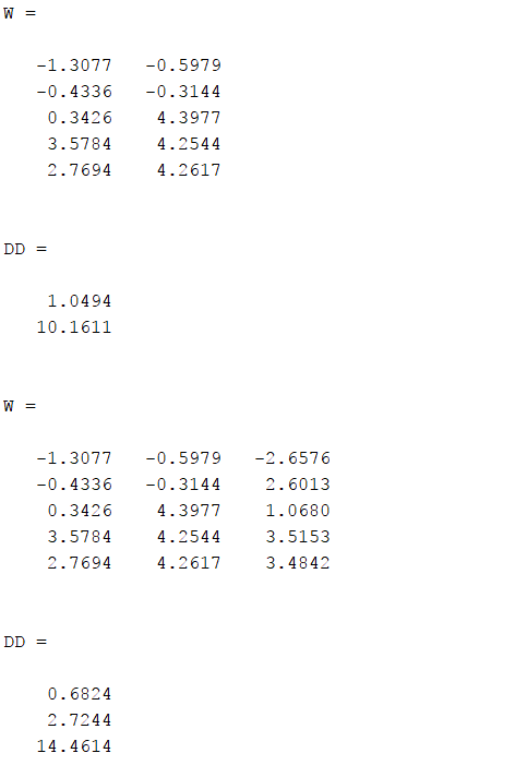 gibt mir Matrizen W zurück und ihre dazugehörigen Eigenwerte sortEV. In diesem Fall sind es jetzt 10 stück. Statt mir diese einfach im command-window auszugeben wie es momentan der fall ist, würde ich die Matrizen gerne Speichern.
