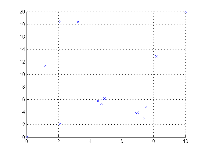 ich habe Punkte in der Ebene, die ähnlich verteilt sind wie in diesem Beispielplot (im Anhang) zu sehen.
