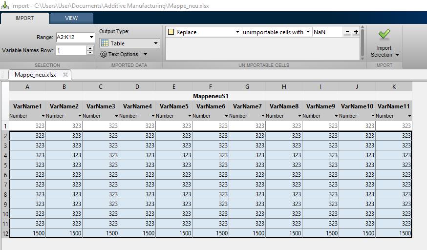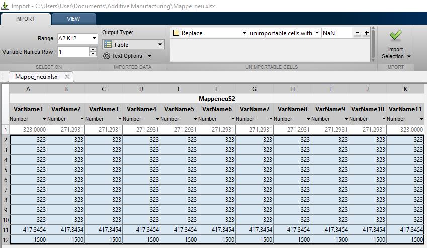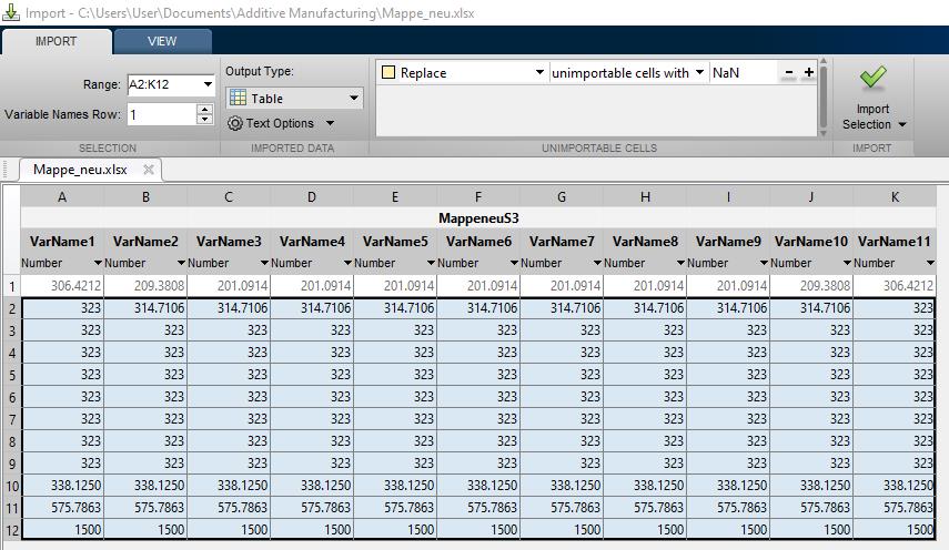 Mein Plan war, die Berechnungen in Excel zu machen und dann die jeweiligen Ta-bellenblätter in Matlab einzulesen.