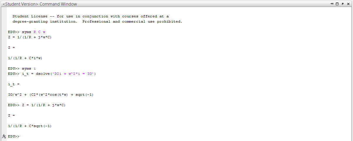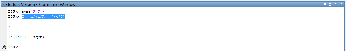 Außerdem verschluckt Matlab ein 'w' (omega) in dem Ausdruck Z = 1/(1/R + j*w*C), siehe Screenshot 2. Auffällig hier ist auch dass eine "Klammer zu" fehlt, diese ist nicht vom Screenschot abgeschnitten.