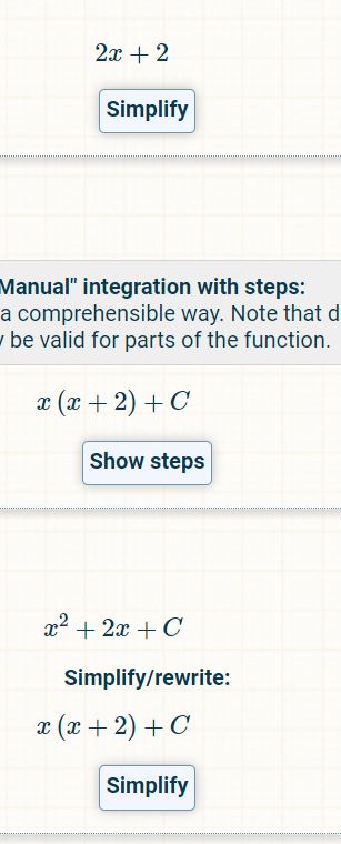 Ich integriere mal 2*x + 2. Ganz klar: x^2 + 2*x