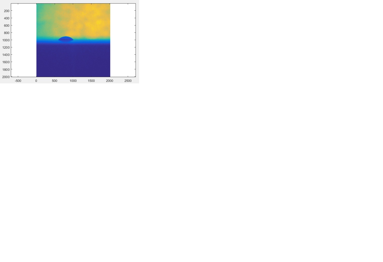 Im Studium nehme ich Bilder von Tropfen auf Platten auf, die aussehen wie im Anhang. Davon sollen Kontaktwinkel bestimmt werden. Dazu ist es nötig, die Basislinie zu bestimmen, also quasi die Linie auf der der Tropfen sitzt. Aufgrund der Oberfläche hat sich der Tropfen gespiegelt und dieser soll nun dort quasi abgeschnitten werden. Ich habe bereits mit Hilfe von Hough Transformation u.ä. versucht das Problem zu lösen. Allerdings wird mir immer der Übergang vom hell- zum dunkelblauen Bereich abgeschnitten und nicht die Linie, auf der der Tropfen sitzt.