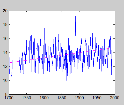 ich habe eine Datenreihe mit Monatsmitteltemperaturen von 1700 bis 2000 vorliegen. Das ganze habe ich auch schon mit einem Plot visualisiert und eine Regressionsgerade eingefügt. Ich will testen ob der Regressionskoeffizient signifikant von 0 abweicht das heißt ob wirklich ein Anstieg der Temperatur vorliegt. Ich gehe davon aus dass ich einen T-Test benutzen muss.