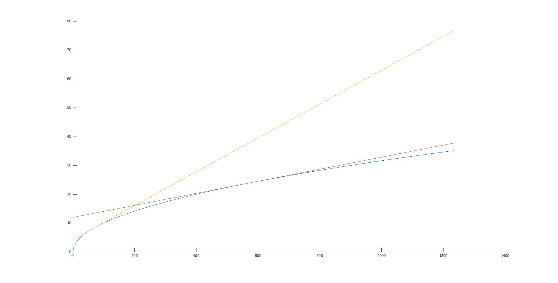 ich habe folgendes Problem, ich soll an eine Messkurve 2 Tangenten anlegen und deren Schnittpunkt berechnen. Folgerndermaßen bin ich bei Matlab bisher vorgegangen: