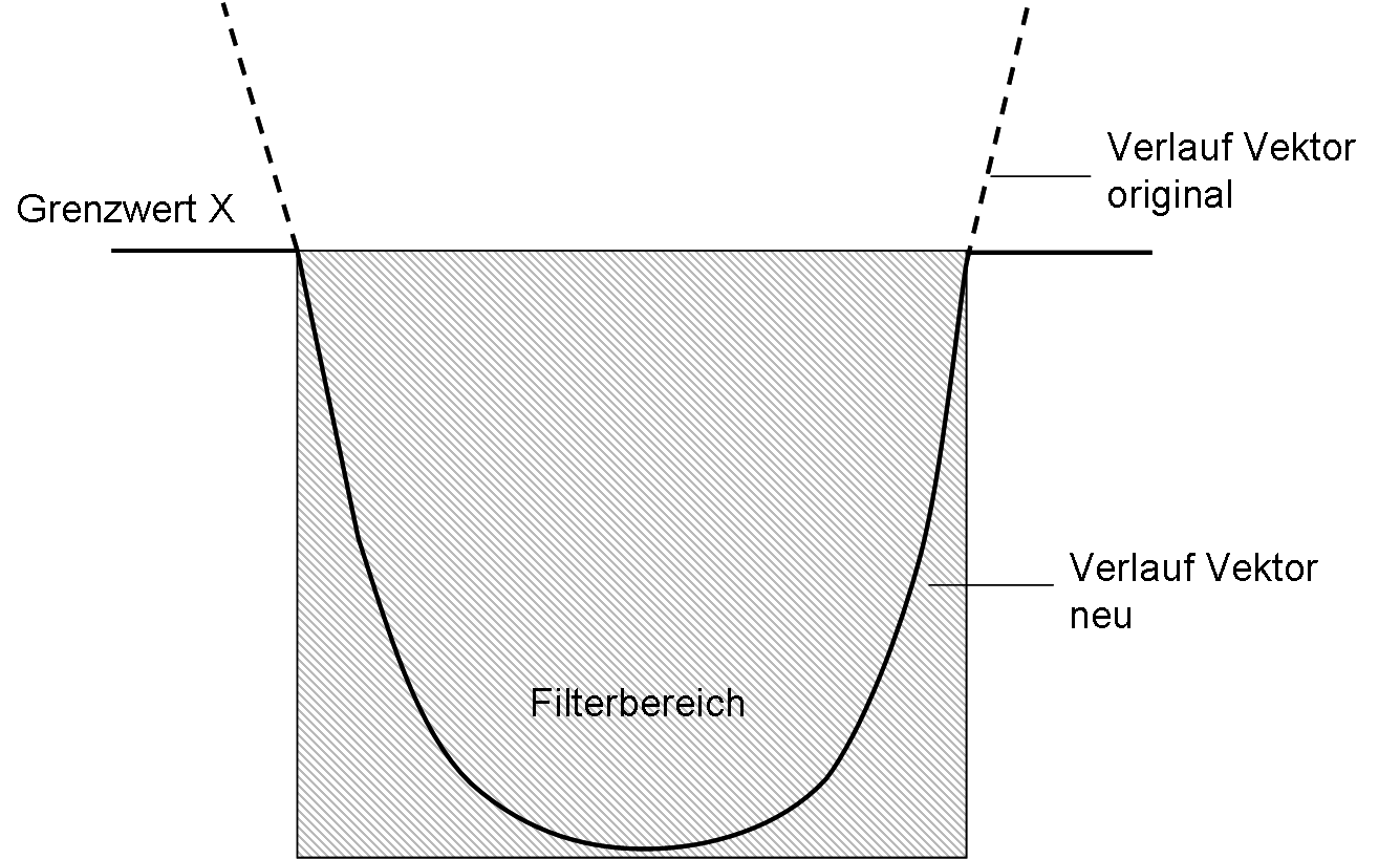 glätten, so dass ein zusammengesetzter Vektor aus konstantem Grenzwertbereich, gefilterter Bereich und konstantem Grenzwertbereich entsteht (s. Anhang).