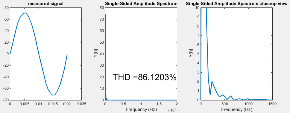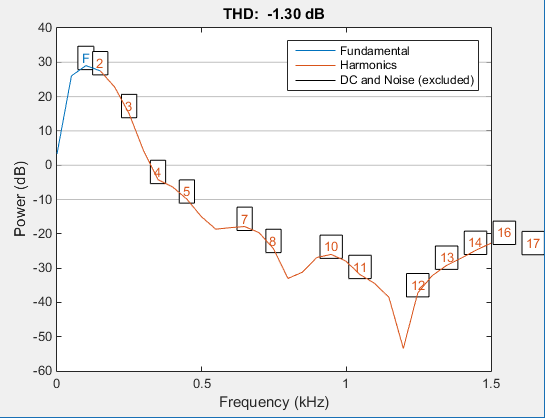 EDIT: Mit einer THD-Funktion aus dem MathWorks File Exchange komme ich auf eine THD von 1,78% (https://de.mathworks.com/matlabcent.....tortion--thd--of-a-signal). Das kann ich zwar nicht überprüfen, aber wirkt realistischer.