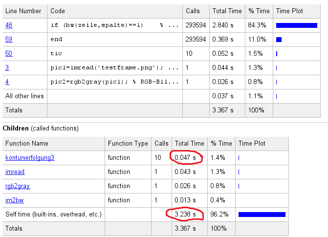 Den Denkfehler kann ich dir nicht erklären, dazu müsste ich wissen was konturverfolgung3 macht. Schau dir doch mal "profile" an, damit siehst du in welcher Zeile der Code wieviel Zeit benötigt.