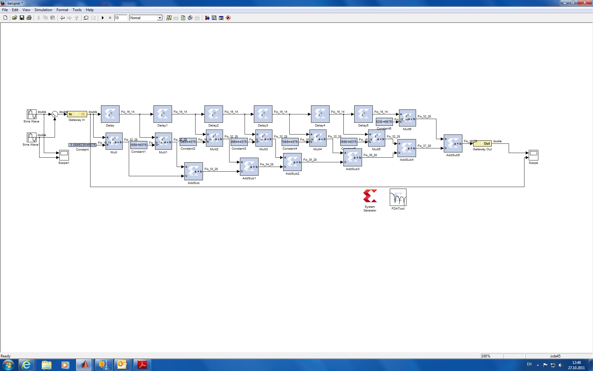 ich versuche grade ein tiefpass filter aufzubauen mithilfe eines tutorial von Xilinx aber leider komme ich zum richtigen ergebnis wie im tutorial dargestellt.