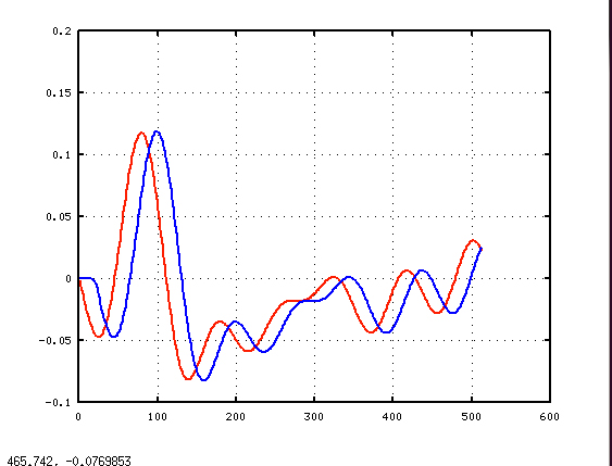 Vielleicht sollte ich noch erwähnen, dass die Impulsantwort des Filters so lang sein muss, dass sich das Filter wieder eingeschwungen hat. Also am Ende der Impulsantwort am besten Nullen vorliegen. Der Dirac als Eingangssignal muss also entsprechend lang genug sein.