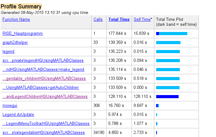 In R2014b und R2015a gibt es einen Bug mit LEGEND unter gewissen Randbedingen, der dazu führt, dass LEGEND sehr langsam ist. Falls es hier die selbe Thematik ist, gibt es momentan keinen bekannten Workaround, ausser R2014a zu benutzen.