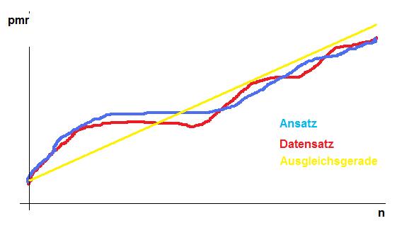 Ich habe dir ein dürftiges Bild in Paint gezeichnet, da die Daten die ich habe vertraulich sind. Ich hoffe es trägt zum Verständnis des Problems bei ,auch wenn meine zeichenkünste wirklich miserabel sind =). In der Zecihnung stellt die rote Kurve den gegebenen Datensatz da, die Blaue Kurve den Angestrebten Verlauf meines Ansatzes und die gelbe Kurve ist die nicht gewünschte Ausgleichsgerade.