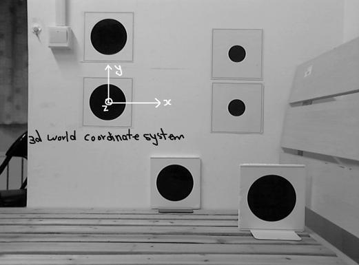 I am going to find the 3D real coordinate of a target point in an image with respect to world coordinate system. The image data was obtained by a stereo vision system. It is supposed that the XY world coordinate plane is attached to the target plane in parallel and the Z world coordinate axis is perpendicular to the target plane as shown in figure bellow. This image captured by the left camera.