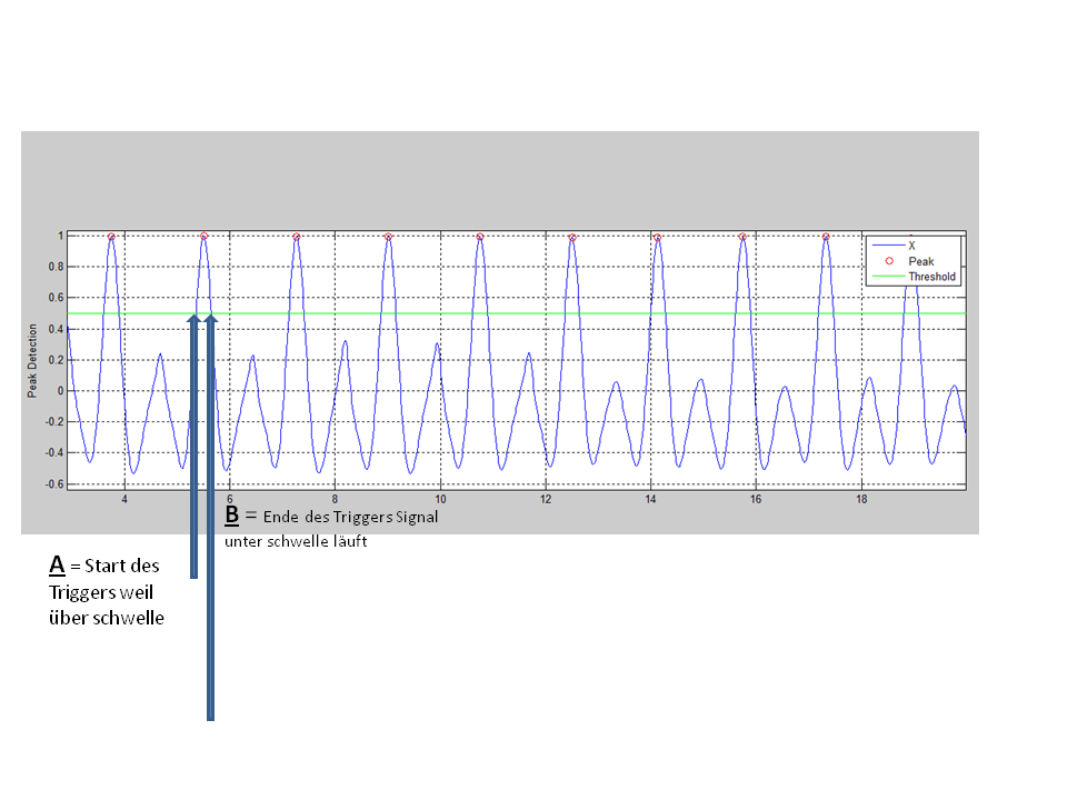 Nun will ich die Zeit haben Zwischen A und B, natürlich über der schwelle, damit ich die Länge des schrittes bestimmen kann. Habe schon gelesen das "Triggern" helfen könnte aber ich weiss nicht wie man das in matlab programmieren könnte.