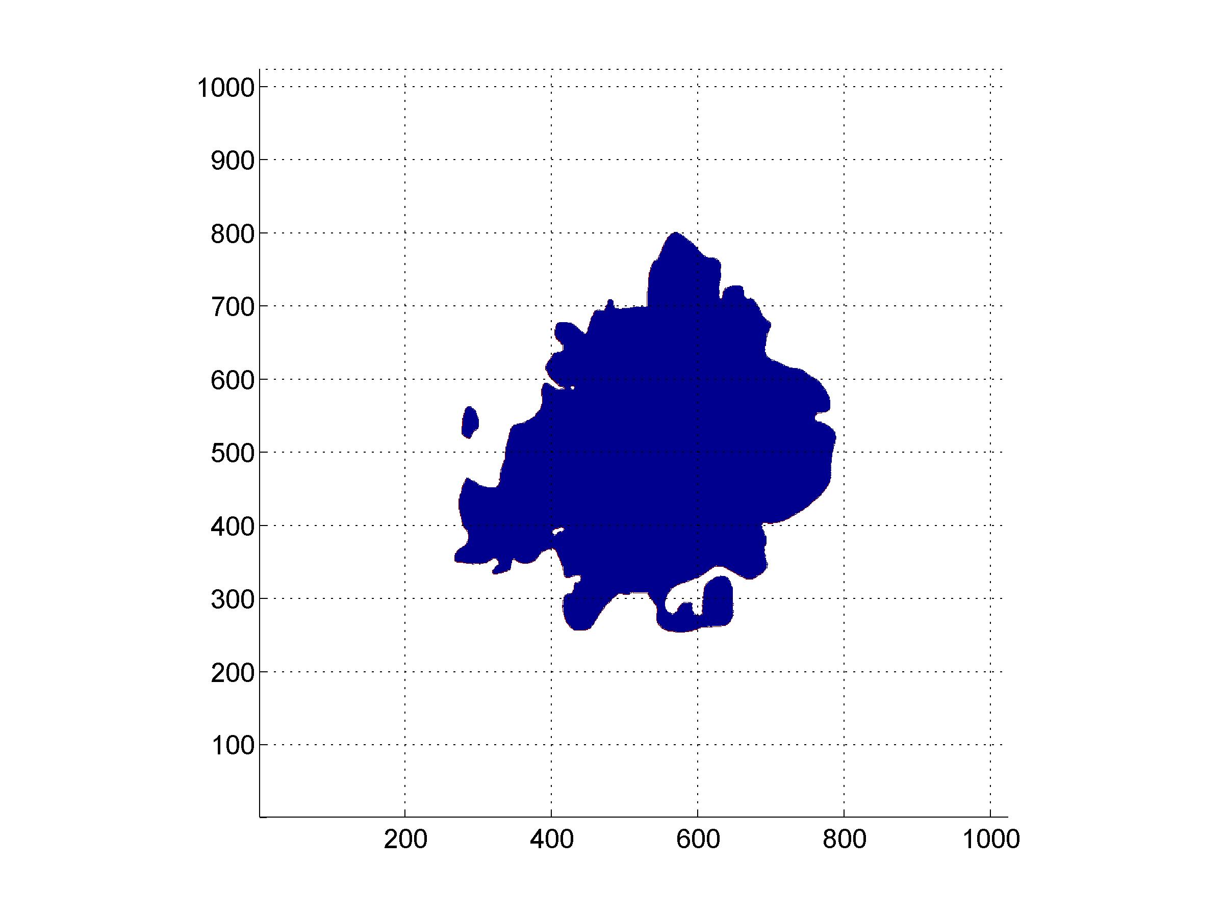 ich habe ein binäres Bild einer Flamme in Form einer Matrix, deren Umfang ich gerne bestimmen möchte. 0 heißt keine Flamme, 1 heißt Flamme. Ein Mesh der Flamme habe ich zur besseren Visualisierung angefügt. Bisher habe ich den Umfang (also die gesamte Grenzlinie) zwischen 0 und 1 über die Anzahl der Pixel bestimmt und deren Summe als Grenzlinie genommen. Dabei wurde den Pixel in ihrer Länge unterschiedlich gewichtet, je nachdem ob der Nachbarpixel diagonal liegt oder nicht. Das Ergebnis ist ok, aber ich frage mich, ob es noch eine andere, elegantere Möglichkeit gibt?