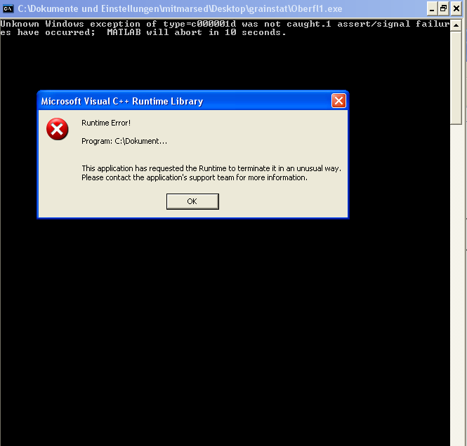 Und dann kommt noch eine Windows meldung die einen C++ Runtime error meldet (siehe angehängt Datei).