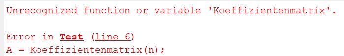 leider funktioniert das bei mir nicht. Ich habe zum Beispiel das Programm Test.m, wo ich die function aus Gleichungssystem_V002.m nutzen möchte. Die function heißt Koeffizientenmatrix. Aber ich bekomme jedes mal den angehängten Error.