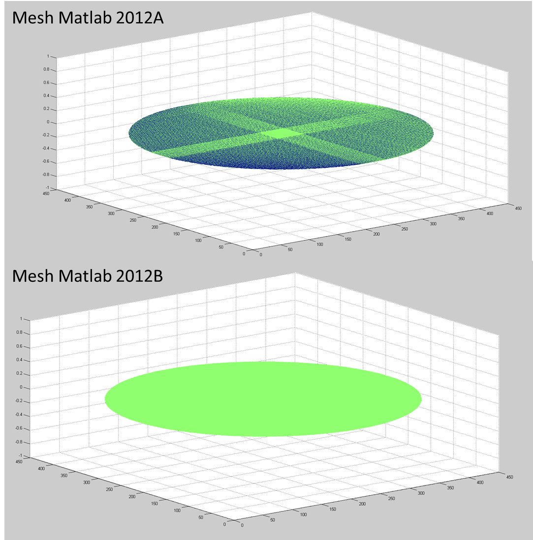 ich habe hier einen merkwürdigen Effekt beim Mesh Befehl. Ich arbeite mit der 2012A, mein Kollege mit der 2012B. Es kann auch gut sein, dass dieser Effekt auch bei anderen Versionen auftritt, das können wir gerade nicht nachvollziehen.