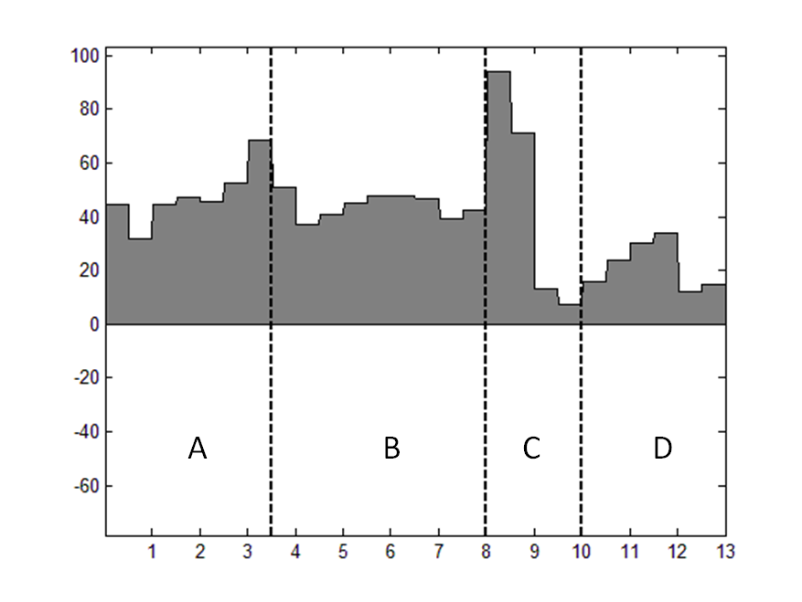 Ich habe eine Frage zum plotten. Ich habe im Anhang ein Area-Plot in 4 Abschnitte unterteilt. Diese wollte ich nun mit Hilfe von Matlab beschriften, wie ich es im Beispiel mit A, B,C und D getan habe.