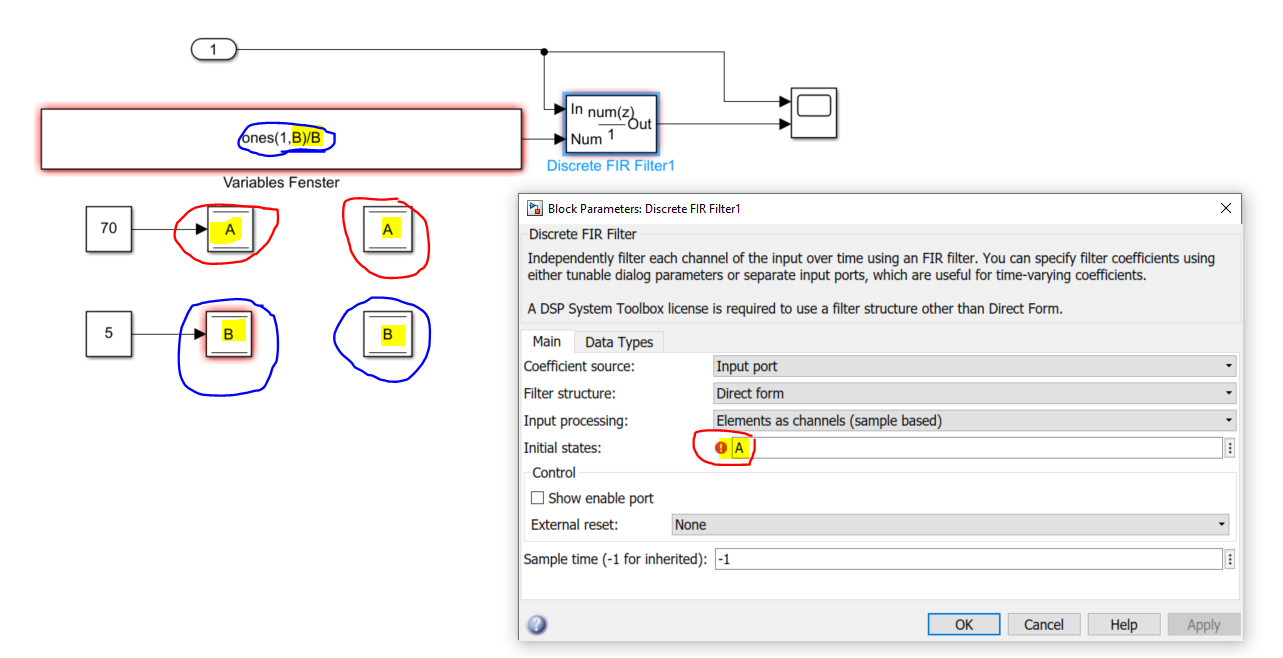 ich möchte einer Variable einen Wert (extern) zuweisen, um diesen Wert wiederum beispielsweise in einer Konstanten oder in einem FIR Filter zu verwenden.