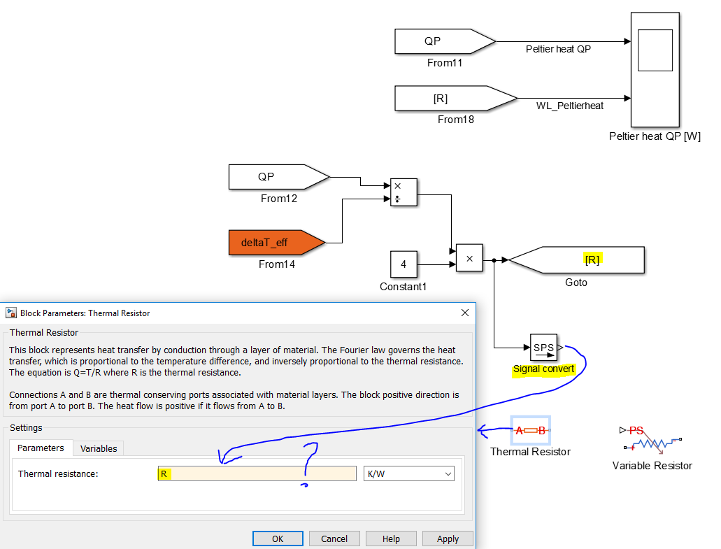 ich bräuchte für mein Model einen variablen thermischen Resistor (Widerstand). Leider bei den fertigen Modellen für thermische Wärmeleitung findet sich nur ein mit einen fest vorgegeben Wert. Bei dem elektrischen Modellen findet man genau so ein Teil, komisch das sowas auch nicht für WL vorgesehen wurde.